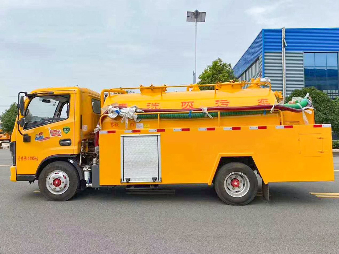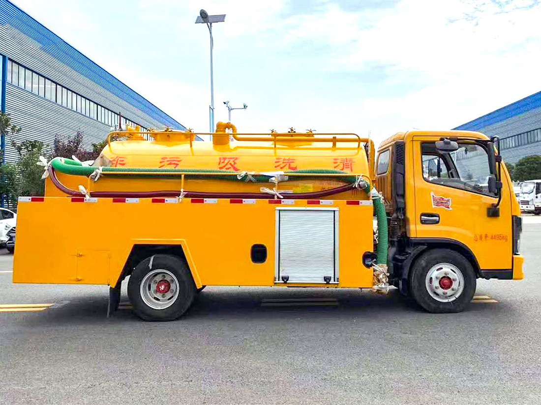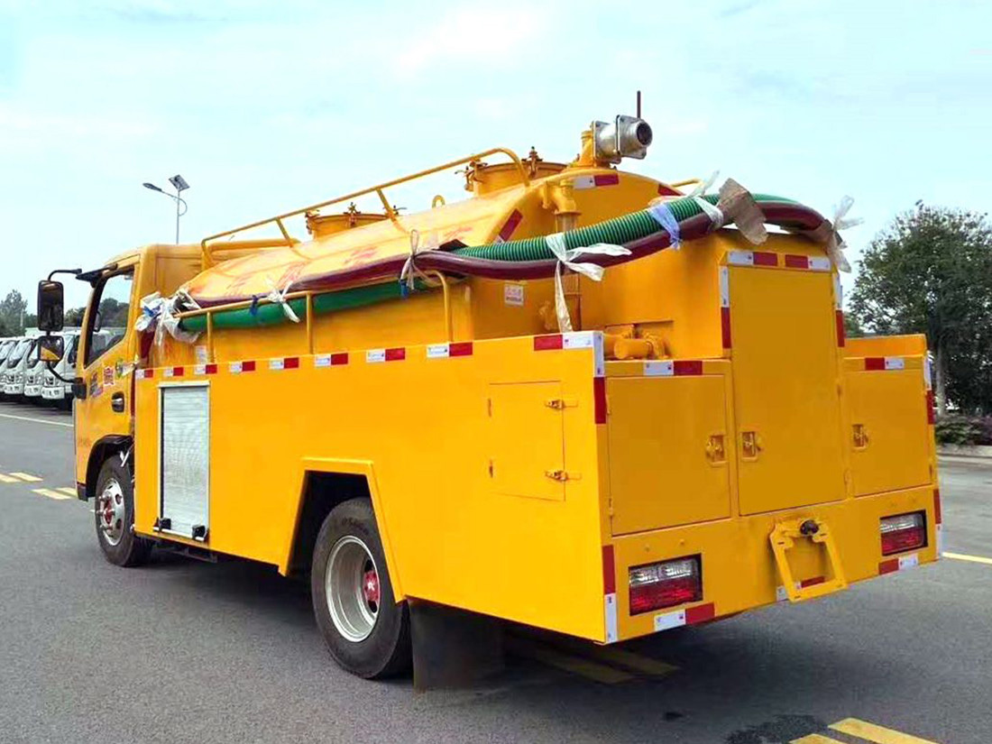 吸污部分:3.8方污罐,罐體5mmQ235優質碳鋼,配淄博SK-9水循環泵(北方地區可選裝威龍真空油泵),8米吸污管一根,進氣管加過濾網,防溢閥加高,后蓋卡扣鎖緊,前視污亮管,后尾部加裝1個力拓牌100、150mm的球閥均帶進出口。
