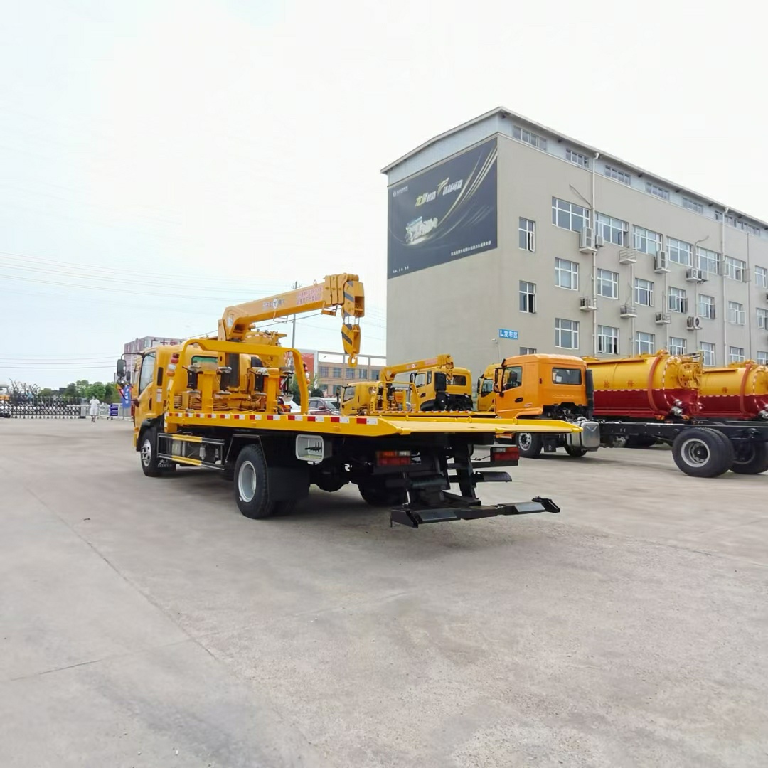 上裝配置:5噸上裝,5噸后托,配備一個40kn液壓絞盤(25米鋼絲繩),5600mm*2400mm,花紋板,**小車兩個,四根捆綁器,輕量化擋泥板,七字叉一對(車胎抱死時使用),方形套筒一對,三角擋胎器一對,一對LED行車燈,工具箱一個。